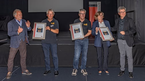 Auf dem Bild: Überreichung der Urkunden des Baselbieter Heimatschutzes für gute Baukultur an die Stiftung Marabu, den Verein Kultur Marabu und die Gemeinde Gelterkinden.