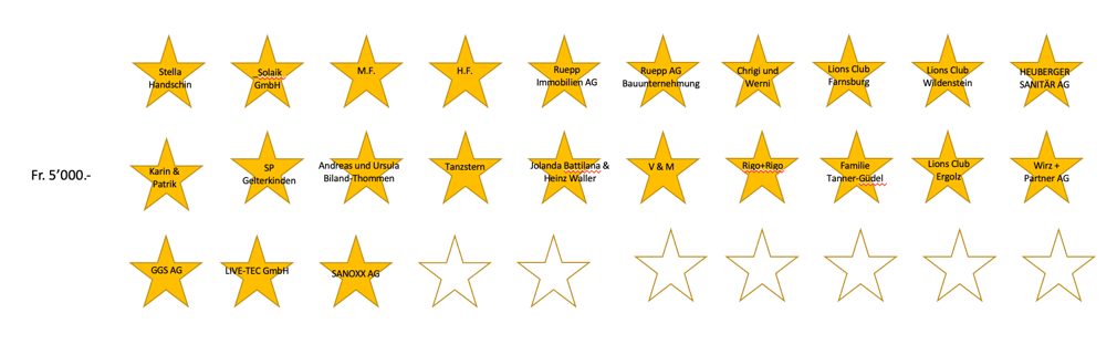 Stars of Marabu: Bis 23. November 2022 wurden 34 Sterne im Gesamtwert von Fr. 255’000.- gespendet.