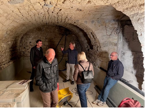 Besichtigung des Gewölbekellers, der zur Künstlergarderobe ausgebaut wird.