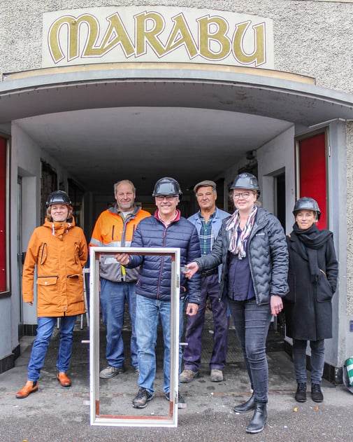 Im Rahmen eines symbolischen Spatenstiches wurden erste Demontagearbeiten für die Sanierung des Marabu in Angriff genommen.