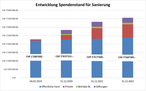 Das aktuelle Total aller Spenden beträgt per Ende 2022 rund 3.55 Mio. Franken.
